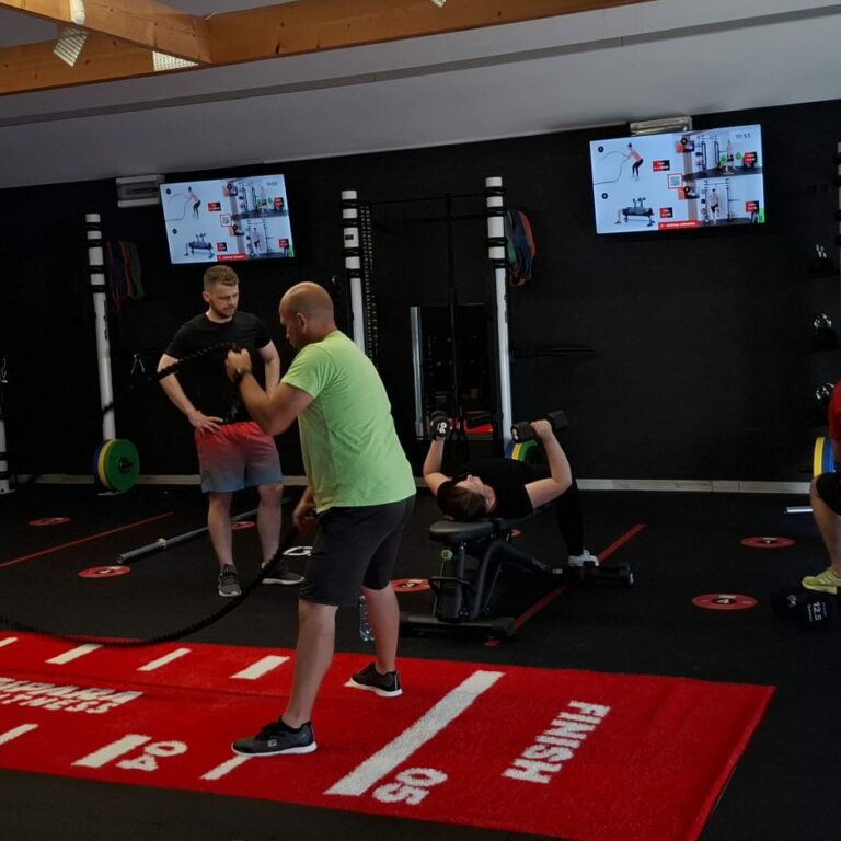 - Trening odwrócony Ćwiczenia są wyświetlane na ekranie, dzięki czemu instruktor może swobodnie poruszać się po sali, udzielać wskazówek, poprawiać technikę i motywować dokładnie tam, gdzie trzeba.